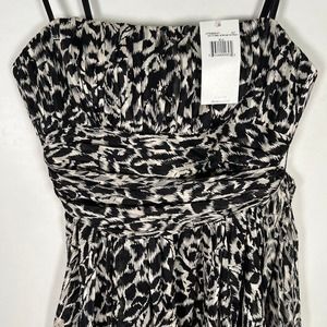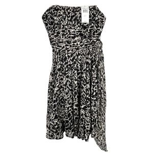 NEW! BCBG MAXAZRIA Silk Ikat Floral Strapless Mini Dress 2 Black Tie Front $260