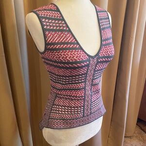 NEW! BCBG Maxazria Alonya Pink Grey Knit Peplum Top Size XS NWOT!