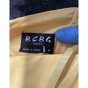 NEW BCBG Paris Strapless Sheath Dress 10 Saffron Yellow Ruched Cocktail NWT $210