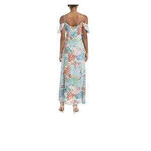 Look stunning in this BCBGMAXAZRIA Colinne tropical-print maxi dress. The dress features a beautiful floral pattern in aqua marine combo color and a long length that makes it perfect for travel, party/cocktail, and casual occasions. The V-neckline and slit sleeves add a touch of sophistication to the dress.