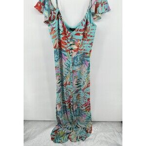 The dress has a button closure, and it is made of polyester chiffon material, which makes it easy to care for by machine wash. The dress is a regular size S, and it is suitable for women who love tropical prints. Get ready for summer, fall, or spring with this stylish and elegant dress from BCBG MAX AZRIA. All measurements were taken across.