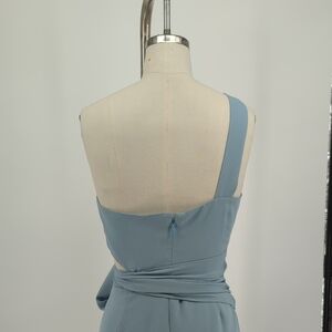 This elegant one-shoulder dress features a beautiful blue hue, perfect for any occasion. The stylish design and flattering fit make it a must-have addition to your wardrobe.
