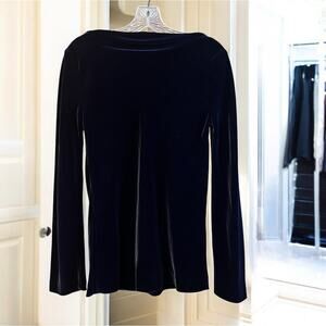 NEW BCBGMaxAzria Navy Velvet Silk Long Sleeve Boatneck Longline Top Sz XS NWOT