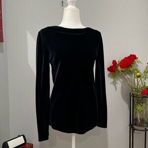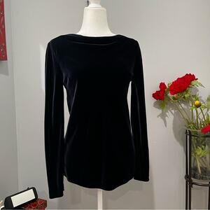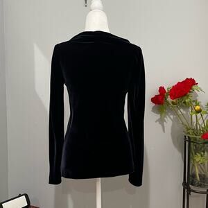 New without tags BCBGMaxAzria Collection Velvet Silk Longline Top with a high Boatneck and Long Sleeves. Slightly Oversized. See measurements. Sz XS.