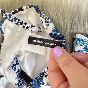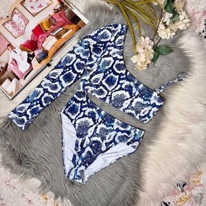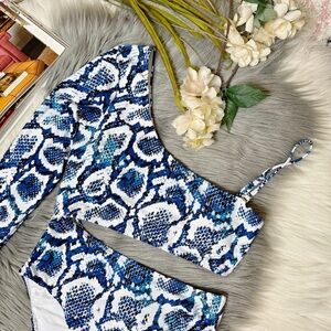 NEW BCBGMaxazria Blue Snake Print One Sleeve Asym High Rise Cutout Swimsuit Sz S