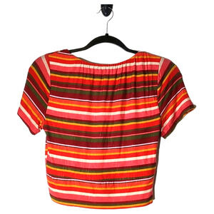 NEW BCBGeneration Crop Top Striped Colorful Summer Shirt with Scoop Neck Size XS