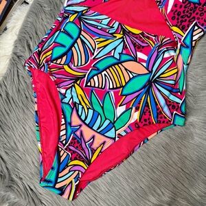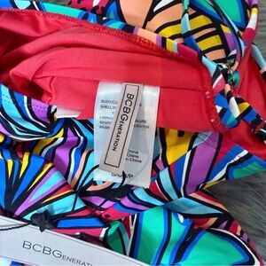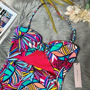 NEW BCBGeneration Rio Red Abstract Halter Palm Women’s One Piece Swimsuit Sz S