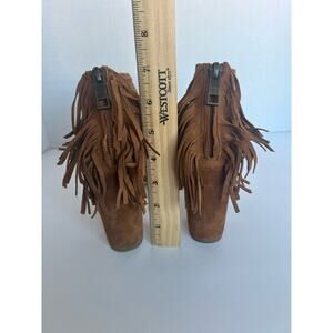NEW BCBGeneration Women’s Calizi Fringe Ankle Strap Camel Suede Sandal 9M