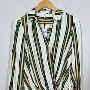 NEW! BCBGeneration Wrap Front Tunic Top Blouse Stripe Long Sleeve Casual - S