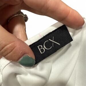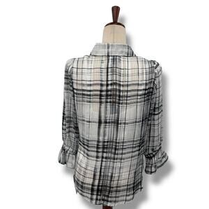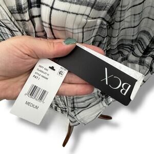 NEW BCX Plaid Layered Blouse Size Medium White Black Sheer Overlay Shirt NWT