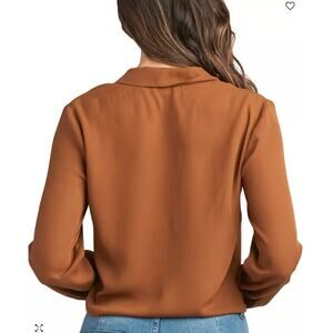 NEW BCX Retro Brown Tie Front Blouse SZ Large 70's Chiffon Boho Neutral Top NWT