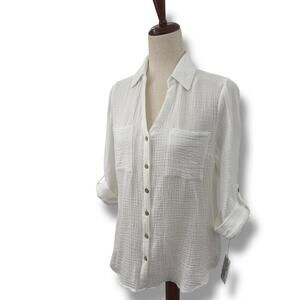 NEW BCX White Top Size Small Cotton Button Front Collared Top NWT