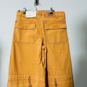 NEW BDG Extreme Wide-Leg Utility Jean Baggy Drawstring Mustard Yellow Size 28