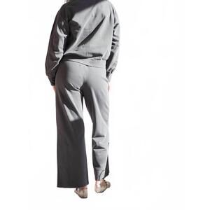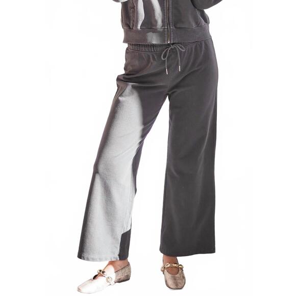 - Description: Introducing the Be Cool Charcoal Wide-Leg Sweatpant, a women's high-rise pant that blends style with leisure. These relaxed fit, pull-on pants are crafted from a soft cotton blend of 87% cotton and 13% polyester, designed for both travel and athleisure activities. They feature a flattering wide leg in a solid charcoal pattern, perfect for off-duty days or casual outings in the spring. Care for this piece with ease—simply machine wash cold and tumble dry low. Model is 5'11" wearing size M.