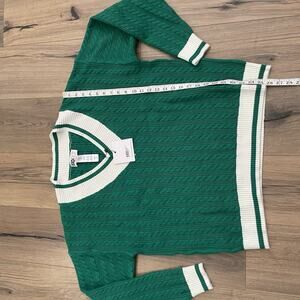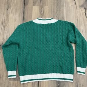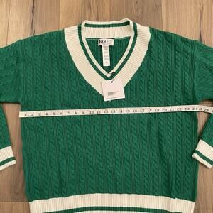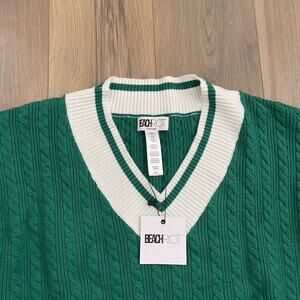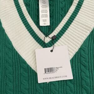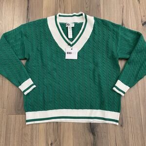 NEW BEACH RIOT Size XL Montana Sweater Green White Cable Knit V Neck Cozy Knit