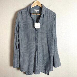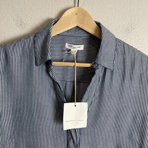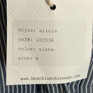 NEW BEACHLUNCHLOUNGE Womens Medium Blue Stripe Shirt Button Up Top Blouse