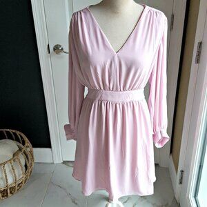 New with tags and a beautiful color and dress in person. Ties in back as shown. Chiffon material. Lined. Fully lined. Measures 36" top of shoulder to hemline x 21" pit to pit x 27" sleeve length. 100% Polyester. Pretty pinky purple. Dress up or down. Pair with boots or a great pair of chunky heels. Smoke free ty for poking in my closet xx