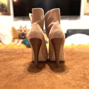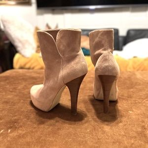Worn once! Excellent condition. BEBE Camel/Tan Suede Leather High Heeled Platform Booties