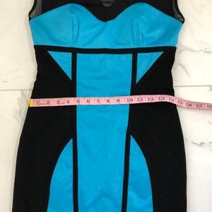 NEW BEBE Classic Black & Turquoise Blue Color block Silky Satin Stylish DRESS S