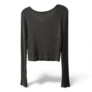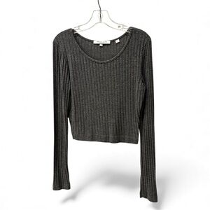 NEW BELLA LUXE Ribbed Scoop Neck Gray Cropped Crew Neck Sweater XS