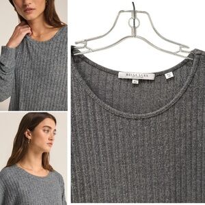 NWOT BELLA LUXE Heathered Gray Ribbed Crew Neck Sweater, XS