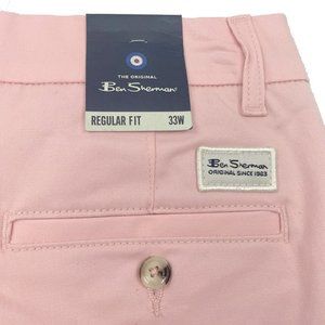 NEW BEN SHERMAN Travel Chino Shorts! 33 Light Pink Flat Front 8 Inch Inseam
