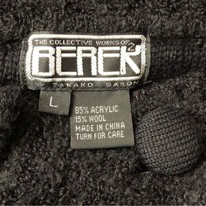 NEW - BEREK by TAKAKO SAKON Black Wool Sweater w/ Covered Buttons, Feathered Collar & Sequins Trim. Size Large. NWOT.