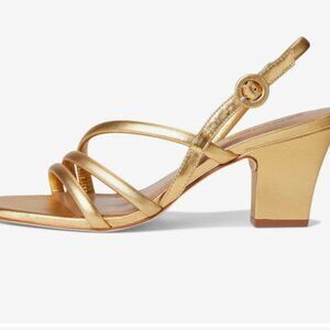 NEW BERNARDO Made In Brazil Patent Leather Naples Heels in gold 7256j3