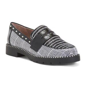 Make a statement with the standout Braylon loafers by Betsey Johnson. This tailored silhouette is embellished with rhinestones across the top, and a bold print.