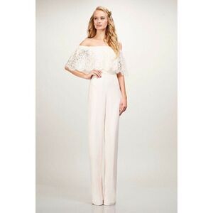 NEW WITHOUT TAG BHLDN Sz 2 THEIA BRIDESMAIDS BRIDAL MILA OFF-THE-SHOULDER LACE JUMPSUIT.