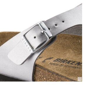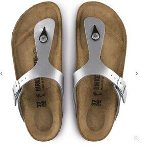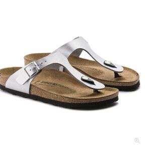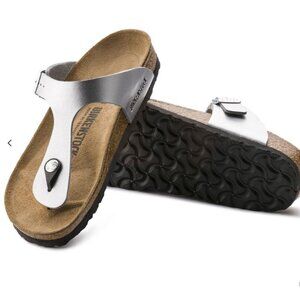 The BIRKENSTOCK Gizeh is a genuine classic and a stylish all-rounder. Our elegant thong sandal combines optimum grip with minimalist, fashionable design. This version features a metallic glossy effect. The upper is made from the skin-friendly, hard-wearing synthetic material Birko-Flor®.