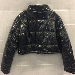NEW! BLACK CROPPED PUFFER JACKET SHINY, Large