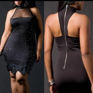BRAND NEW! PLUS SIZE: This dress is nothing to laugh at IT IS SUPER SEXY! ROCAWEAR Rhinstone high neck Mesh rhinestone fitted stretch SEXY Dress 2X
