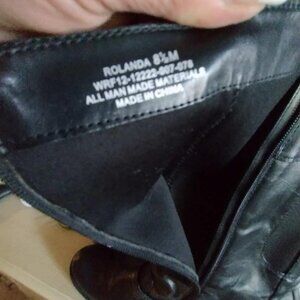 Wore one time only around the house really nice boots with flat heel, inner full zipper, cute design and elastic back for people with wide calfs. I love them but my mother bought them for me and they are to big. Size 8 1/2 made by Bear Traps.