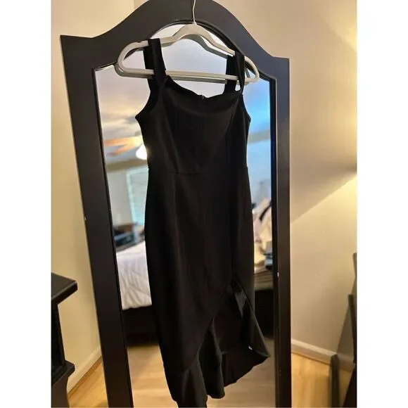 NEW BLACK RUFFLE DRESS Exposed Zipper S