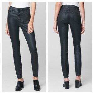 NEW BLANK NYC 27 The Great Jones Coated High Rise Jeans Exposed Button Fly Black