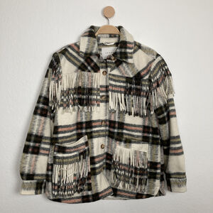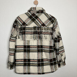 NEW Blanknyc Women Brainstorm Multicolor Plaid Fringe Button Shacket Size Medium