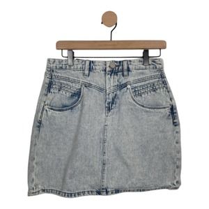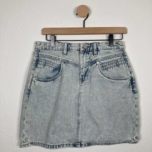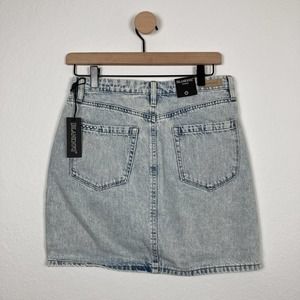 NEW BLANKNYC WOMENS BLUE FLAT FRONT CURVED INSET POCKET DENIM MINI SKIRT SIZE 27