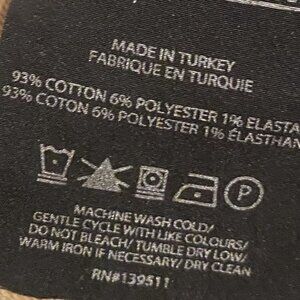93% Cotton, 6% Polyester, 1%. Elastane