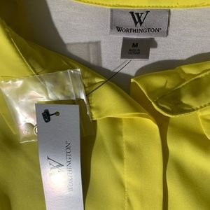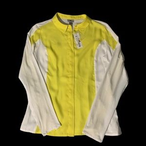 ELECTRIC YELLOW/WHITE Made in Vietnam Woven: 100% Polyester Knit: 95% Rayon 5% Spandex