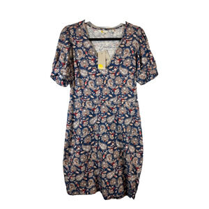 NEW BODEN V-Neck Jersey Mini Dress Size 6L Navy Paisley Terrace Boho floral C12