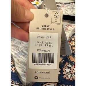 Add a touch of bohemian charm to your wardrobe with this Boden V-neck jersey mini dress in navy blue. The dress features a pleated, ruffle, and embroidered design with a paisley pattern that adds a unique and stylish touch to your look. The empire waist and puff sleeves provide a flattering fit for the dress, making it suitable for casual, party/cocktail, or travel occasions. Made of 100% cotton, this knee-length dress is machine washable, making it easy to maintain. The dress is available in size 6Long and is perfect for women who want to add a touch of boho chic to their wardrobe. Get this dress now and elevate your style game!