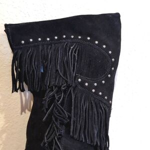 NEW BOHO Chic Tonto Fallz Over Knee Fringe Leather Black Suede Boots - Size 6.5
