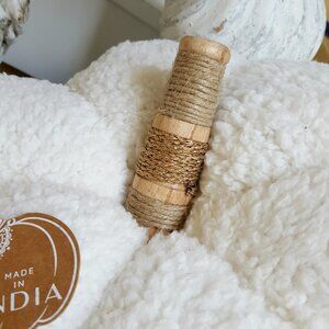 NEW! BOHO Large PLUMP SHERPA & WOOD PUMPKIN PILLOW