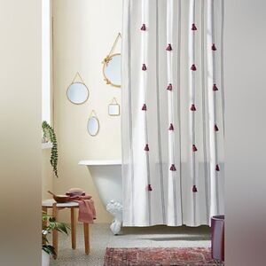 NEW BOHO TASSEL JOHNNY FRINGE MATERIAL FABRIC WAS SHOWER CURTAIN CREAM PURPLE