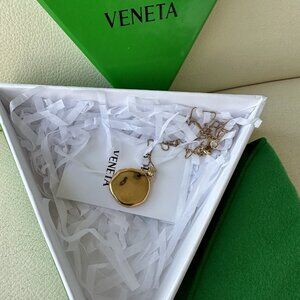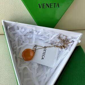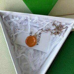 NEW BOTTEGA VENETA NECKLACE PENDANT 651192 Orange Gold Chain Round
