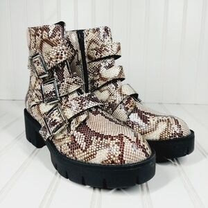 NEW BP Lilly Buckled Snake Print Moto Boot C408