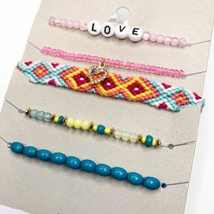 NEW BP Love spell out beaded bracelet friendship knit bracelet set with gold tone rhinestone heart. 5 piece set. Multicolor beaded bracelets. 90s style