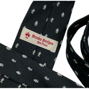 NEW BROOKS BROTHERS RED FLEECE Men's 100% Silk Necktie LUXURY Black Robot W:2.5"