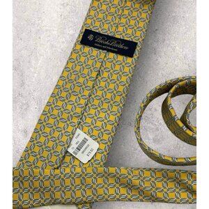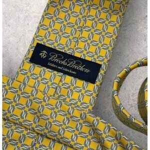 NEW BROOKS BROTHERS Silk Tie USA Yellow Blue Geometric W:3.5"